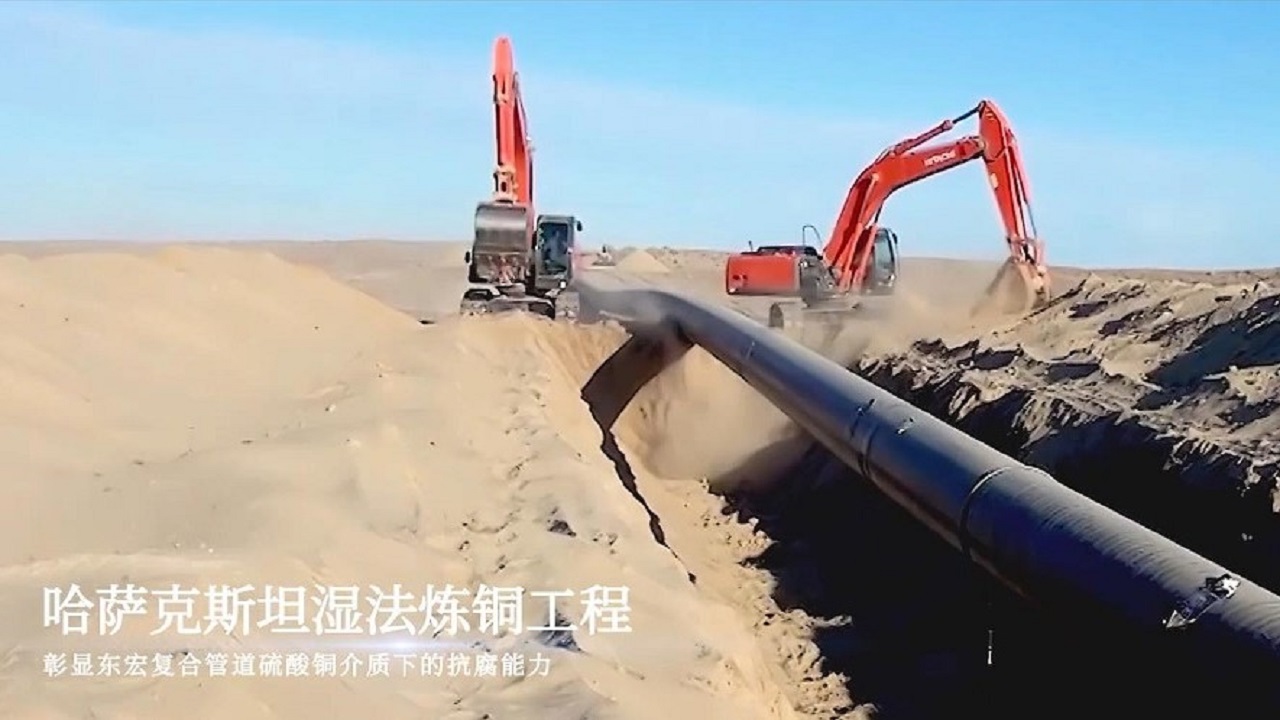 一帶一路哈薩克斯坦?jié)穹掋~項(xiàng)目,需露天輸送強(qiáng)腐蝕性硫酸銅介質(zhì),東宏高壓力耐腐蝕SRTP,采composite500鋼塑復(fù)合技術(shù)及seal-seal雙密封超強(qiáng)連接技術(shù),完美解決了特殊介質(zhì)下的耐腐蝕輸送難題。彰顯了東宏鋼絲網(wǎng)骨架管道酸性介質(zhì)下的抗腐能力。
